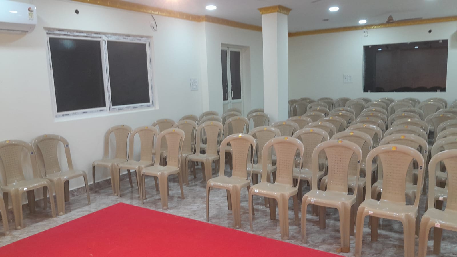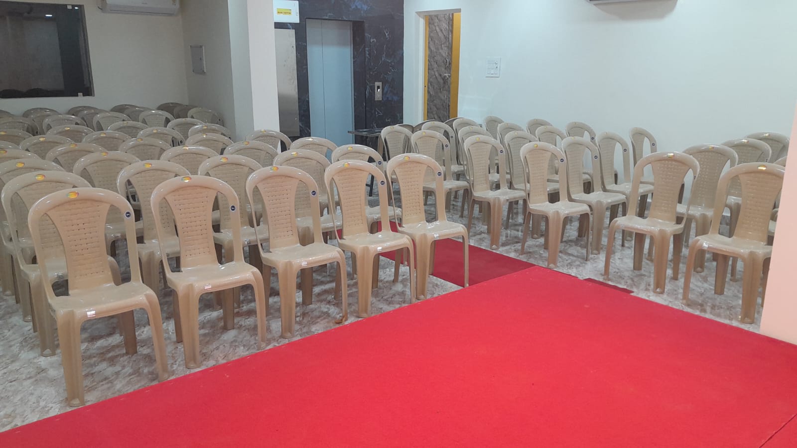 Sathya Residency offers a spacious, fully air-conditioned Convention Hall with a seating capacity of 120 people, making it ideal for conferences, meetings, social events, and celebrations. The hall is equipped with modern amenities, including a sound system, microphone, audio system, and a projector with a screen, ensuring that your presentations and events run smoothly. We also have a separate Inside Dining Hall with a capacity of 40 members, perfect for smaller gatherings or meals. For added convenience, our lift facility allows easy access to the hall, while the stage with King and Queen chairs adds a touch of elegance for special guests. Whether you're hosting a business event or a personal celebration, our convention hall provides a professional and comfortable setting for any occasion.